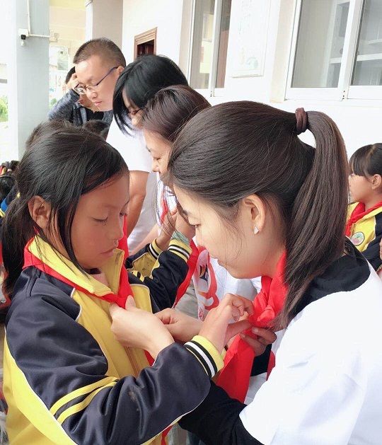 溫馨的時間總是飛快的,聽課、游戲、家訪、與師生共進午餐,系上紅領巾愉快地度過了一天。孩子們與我們很親近,沒有一點的陌生感,還主動要求與我們合影,而后一起開開心心地欣賞手機里的照片。孩子們戀戀不舍地與我們作別。“謝謝叔叔阿姨!”“叔叔阿姨再見!”孩子們童稚的聲音一直在我們耳邊回響。山道彎彎,仰望不染纖塵的碧空,聆聽山泉歡歌,心靈在孩子們最純潔的眼神里得到一次徹底刷新!這是一份來自源頭的能量!