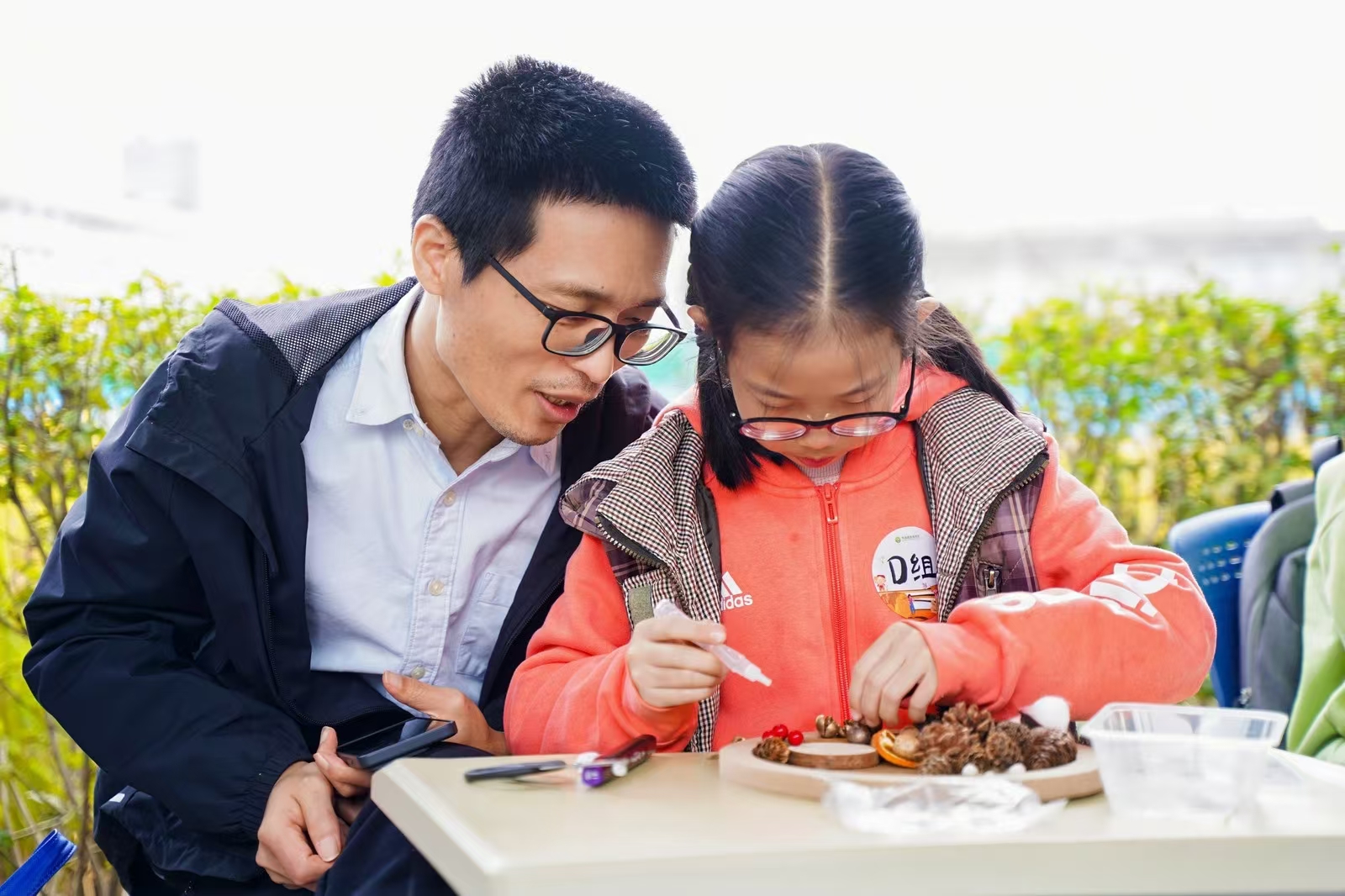 緊接著在“秋的定格”環(huán)節(jié)里,孩子們充分發(fā)揮自己的想象力與創(chuàng)造力,以干花、水稻等充滿秋日氣息的植物為素材,精心創(chuàng)作屬于自己的獨特藝術(shù)品。他們?nèi)缤⌒〉乃囆g(shù)家,將對秋天的熱愛與感悟融入到每一個作品細(xì)節(jié)之中,或粘貼,或拼接,忙得不亦樂乎。不一會兒,一件件別具匠心的秋日藝術(shù)品便呈現(xiàn)在大家眼前,每一件都飽含著孩子們對大自然的贊美與秋收的喜悅。而暖意也在親子共同創(chuàng)作作品的過程中不斷涌動。